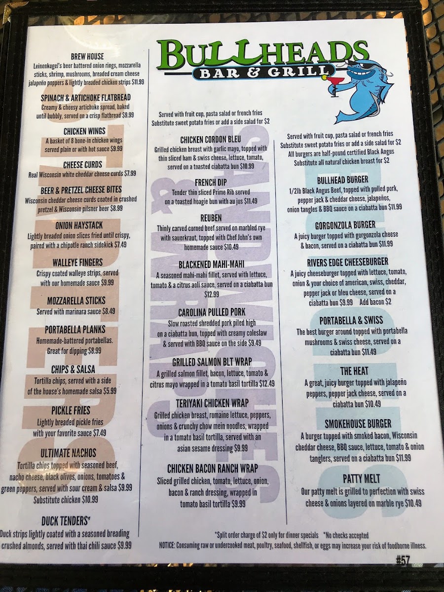 Welcome to Bullheads Bar & Grill Restaurant, a hidden gem located at 3368 Campsite Dr, Stevens Point, WI. This inviting eatery offers a diverse menu that emphasizes local flavors and fresh ingredients. Diners rave about their renowned fish fry, notably the crispy, flavorful haddock that stands out among traditional offerings. Side dishes like the creamy cole slaw and fresh potato salad enhance the experience, bringing a satisfying balance to each meal.