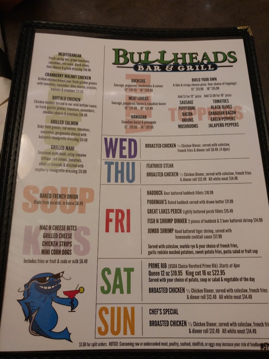 Discover the delicious secrets of Bullheads Bar & Grill Restaurant on your next culinary adventure!